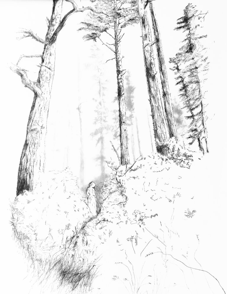Inspired by Hiddensee, where I live, and the island’s landscapes and myths, I use very fine rapidographs or pens, without preliminary sketches and the possibility to erase anything to create rather dreamy aesthetics in filigree networks of lines.